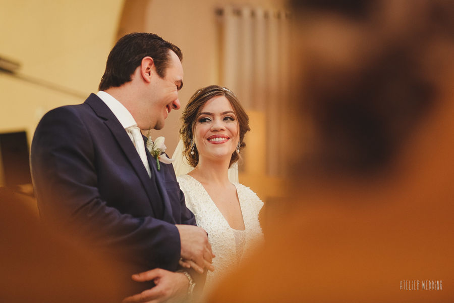 Quando eles nos procuraram deixaram claro que queriam uma proposta diferente para o grande dia. A começar pelo horário: 11h da manhã. A cerimônia foi na charmosa igreja de Schmitt.