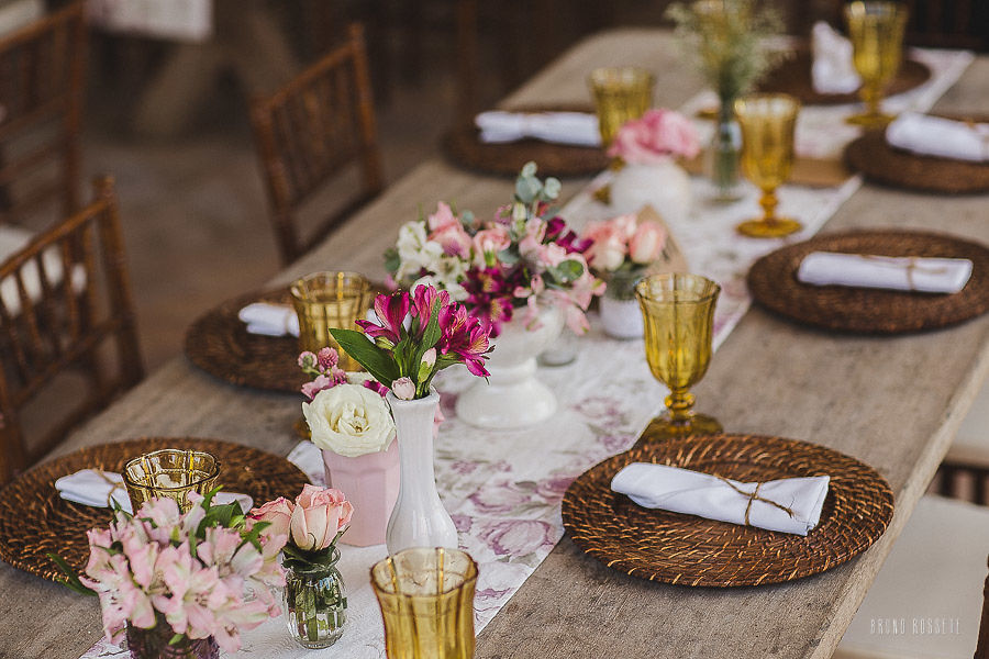 Eles nos contrataram através da internet, e mesmo tendo o primeiro contato pessoal apenas na véspera do evento, sentimos uma conexão muito forte. Isto nos proporcionou liberdade para fotografar esta festa repleta de lindos momentos, com uma decoração pensada para realçar o clima de casamento no campo.